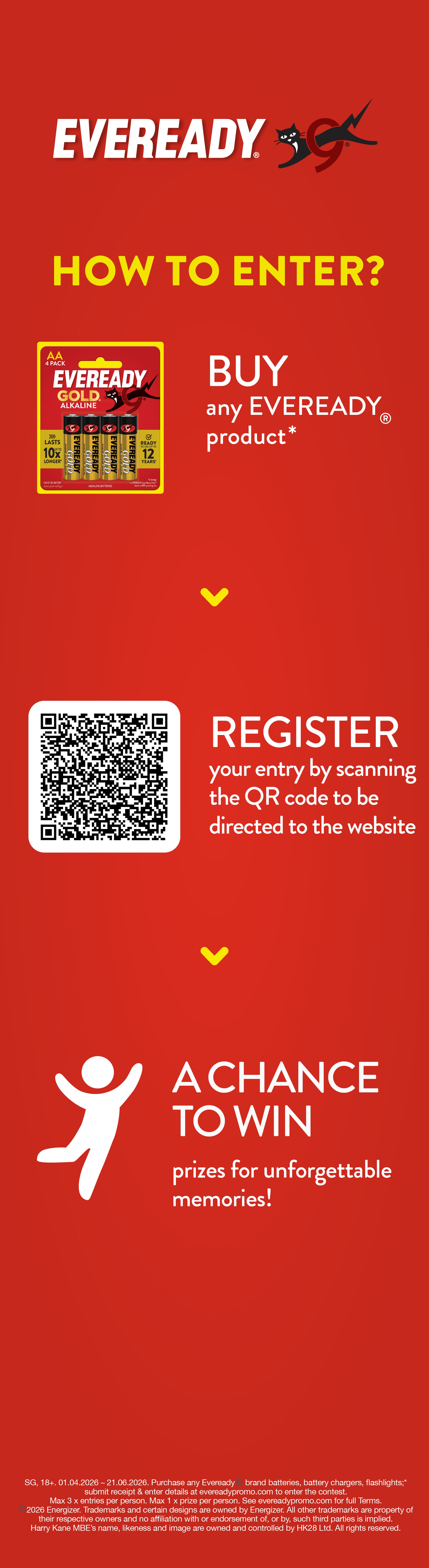 Buy any participating Eveready products during the campaign period and receive additional redemption code from promoter during roadshows